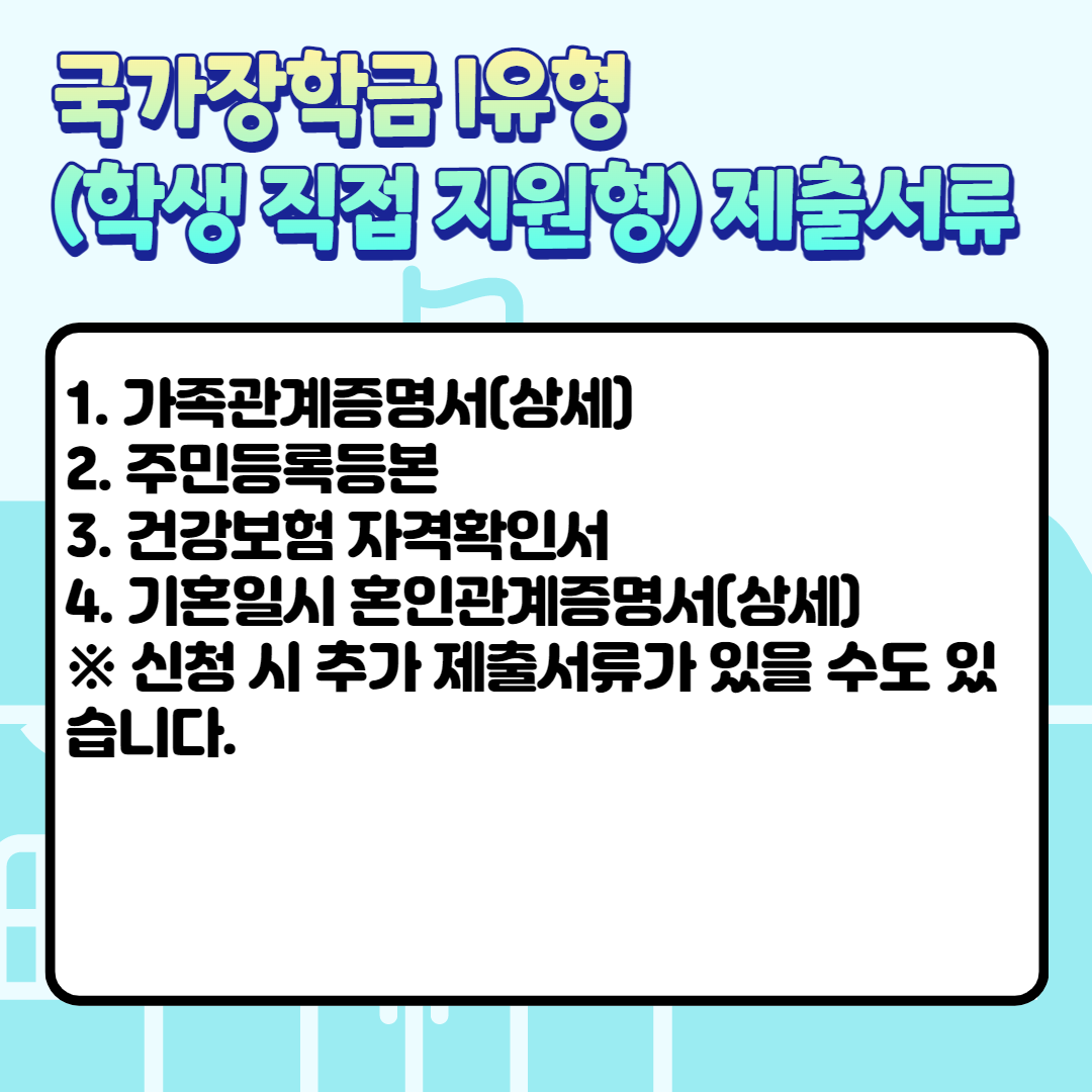 국가장학금 I유형(학생 직접 지원형) 신청 시 제출서류는?