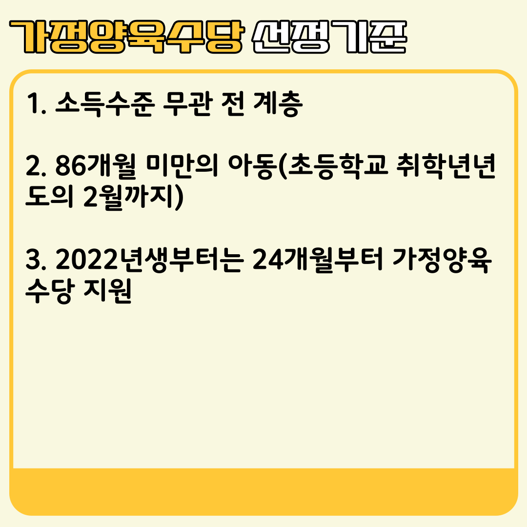 3. 2022년생부터는 24개월부터 가정양육수당 지원