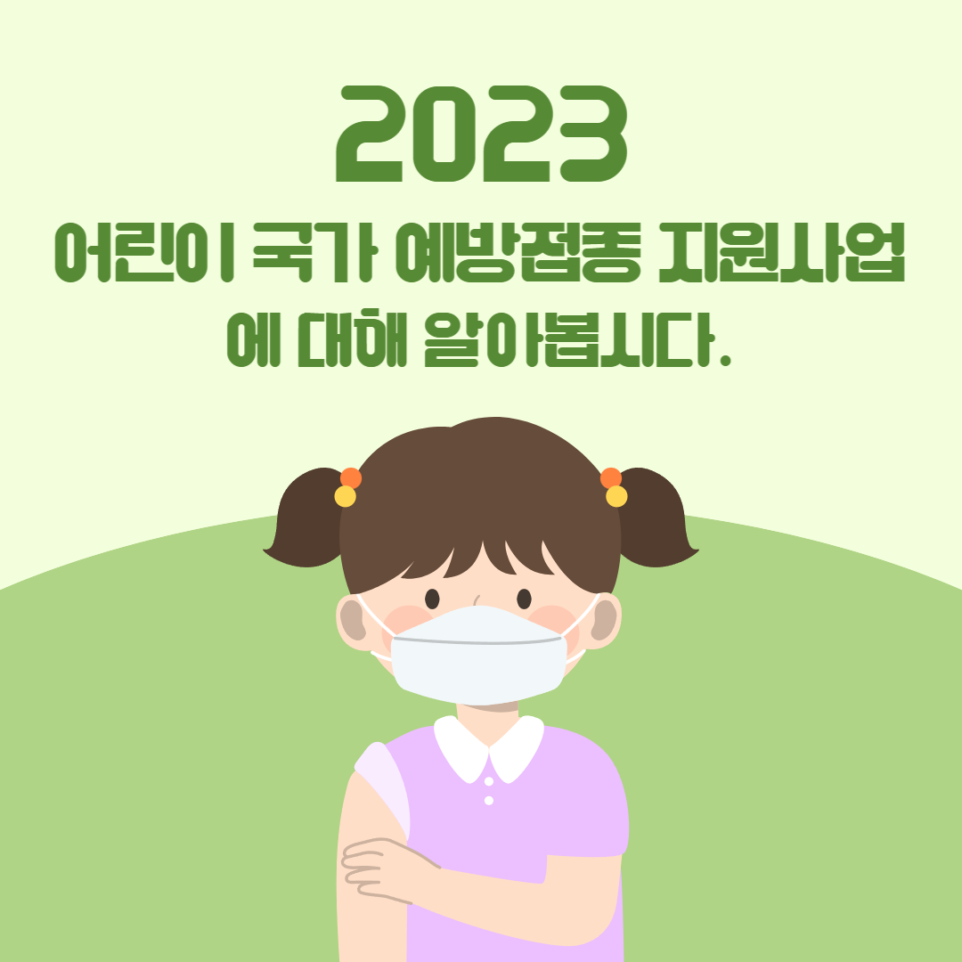 안녕하세요, 이번 시간은 2023년 국가 예방접종 지원사업 중 어린이들을 위한 어린이 국가 예방접종 지원사업에 대해 알아보도록 하겠습니다.