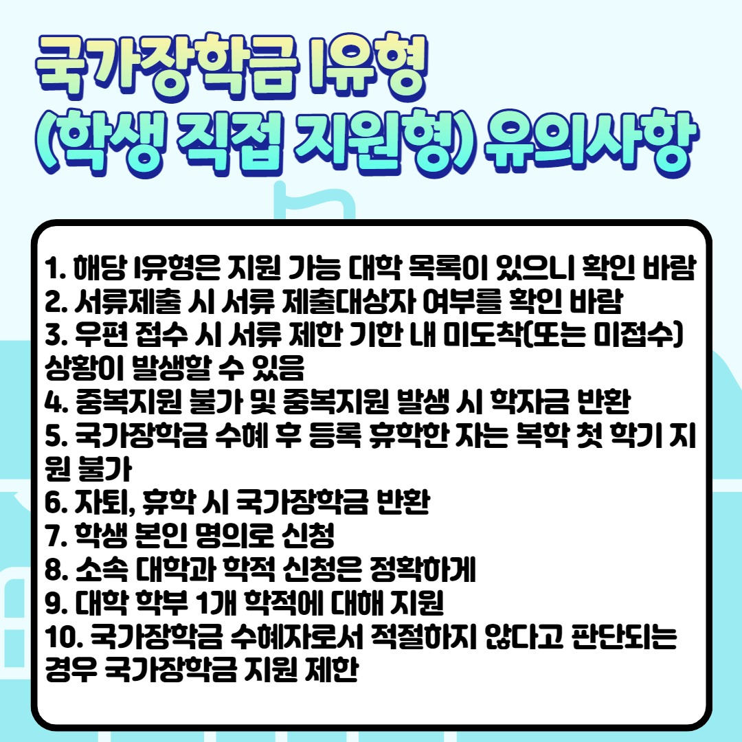 국가장학금 I유형(학생 직접 지원형) 신청 시 유의 사항은?