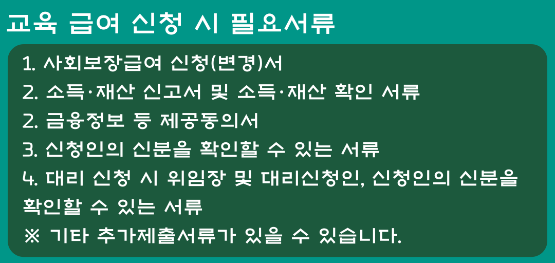 이상으로 교육 급여 대해 알아보았습니다. 더 자세한 내용을 원하신다면 거주지 읍·면·동 주민센터 및 교육부, 복지로를 통해 상당 받으시기 바랍니다.