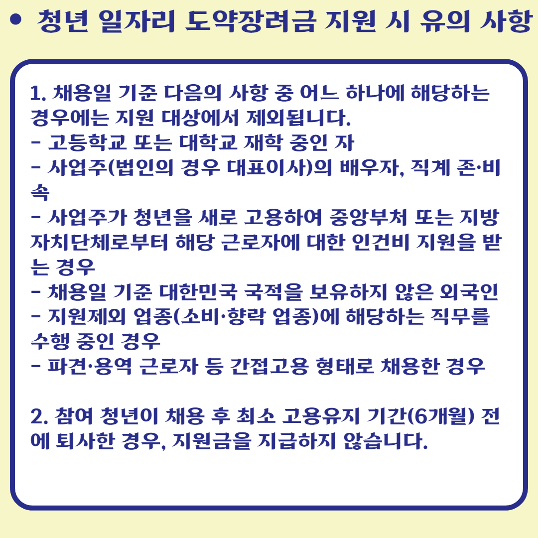 청년 일자리 도약장려금 지원 시 유의 사항은?