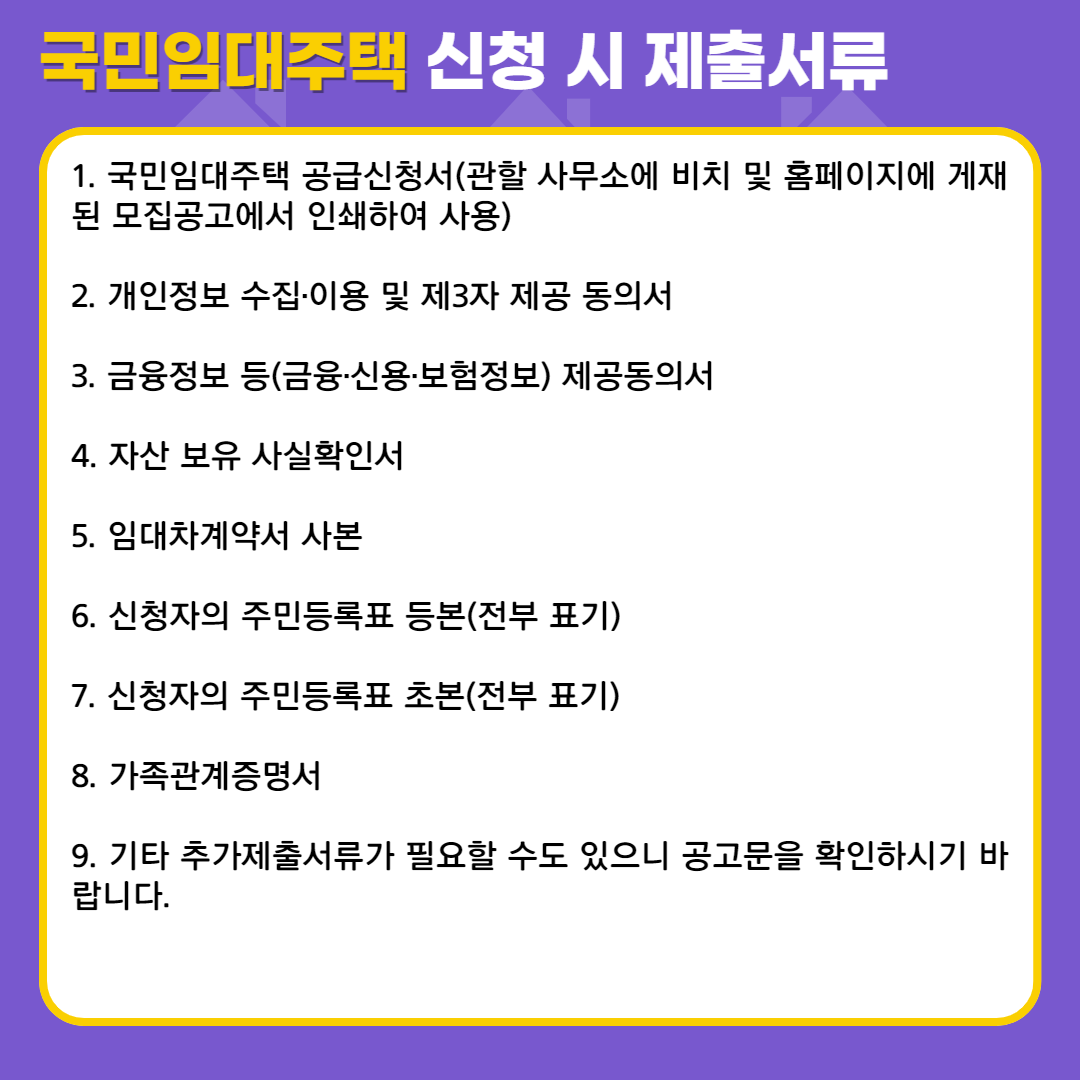 국민임대주택 신청 시 제출서류는?