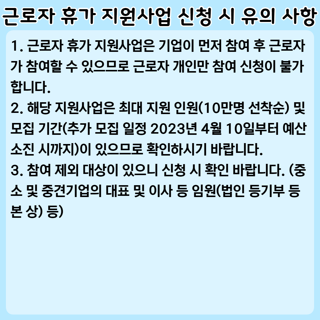 근로자 휴가 지원사업 신청 시 유의 사항은?