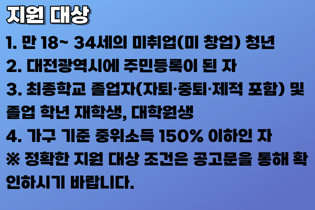 ※ 정확한 지원 대상 조건은 공고문을 통해 확인하시기 바랍니다.