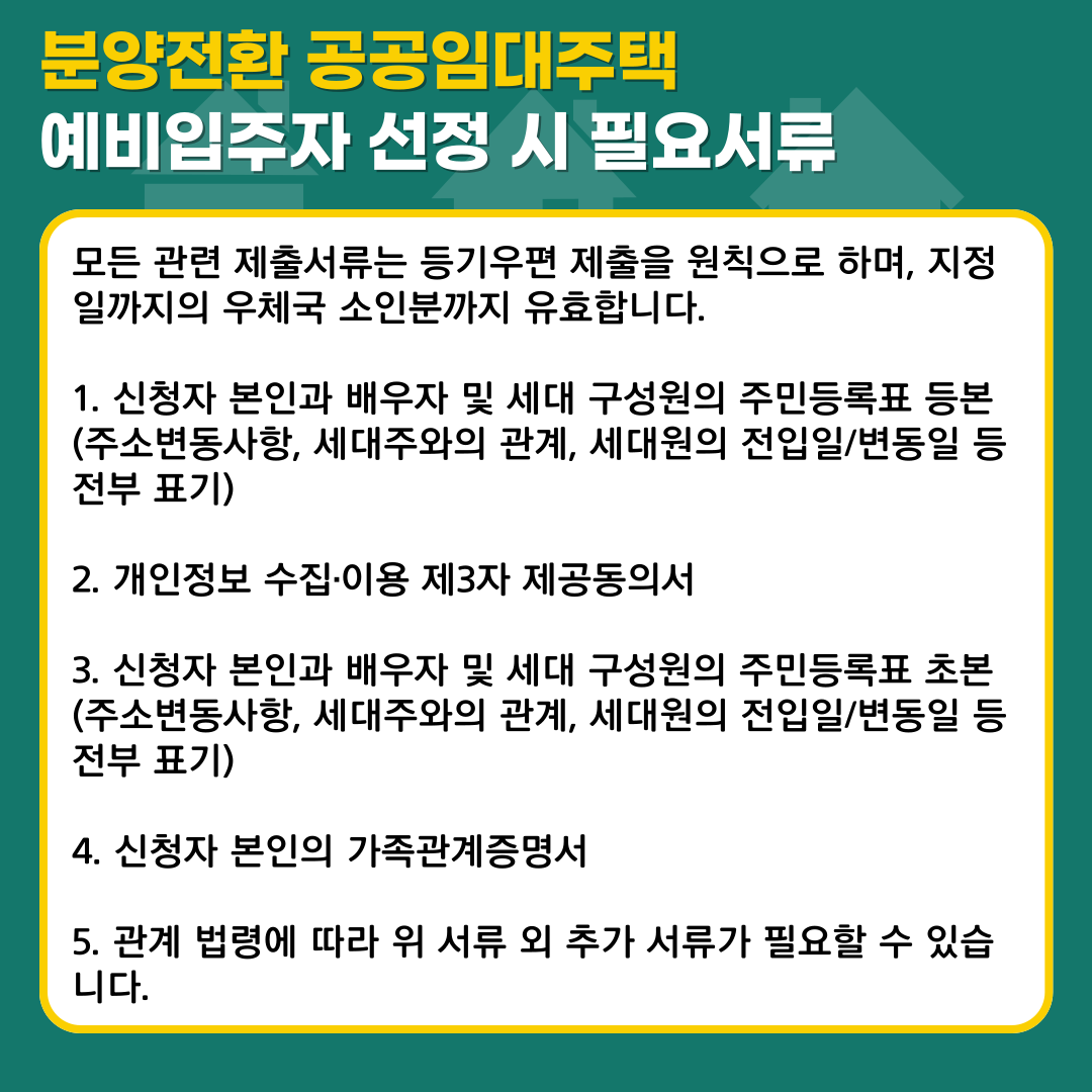 분양전환 공공임대주택 예비입주자 선정 시 필요서류는?