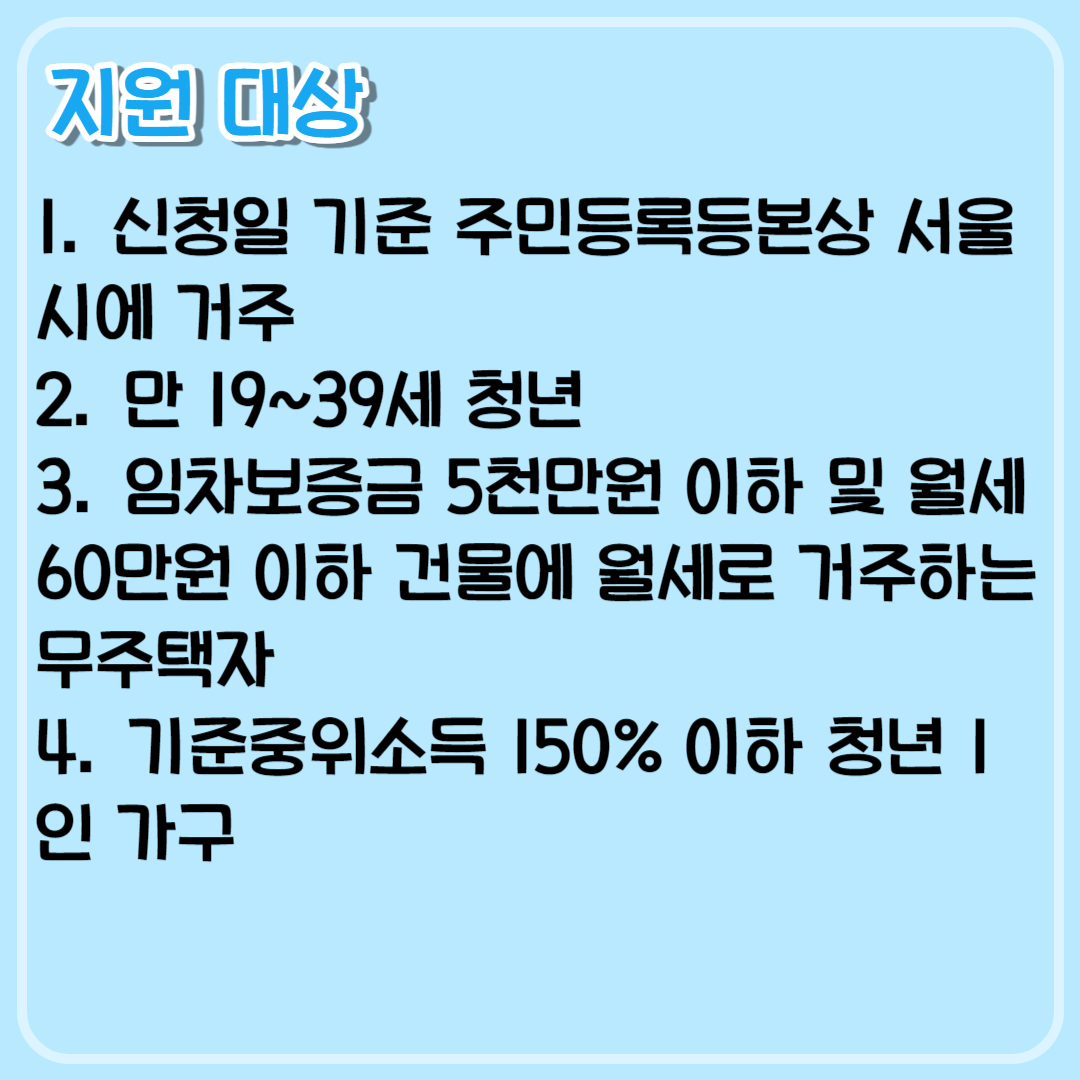 안녕하세요, 오늘은 서울시 청년들의 주거비 부담 완화하기 위한 월세지원사업인 2023 서울 청년월세지원에 대해 알아보도록 하겠습니다.