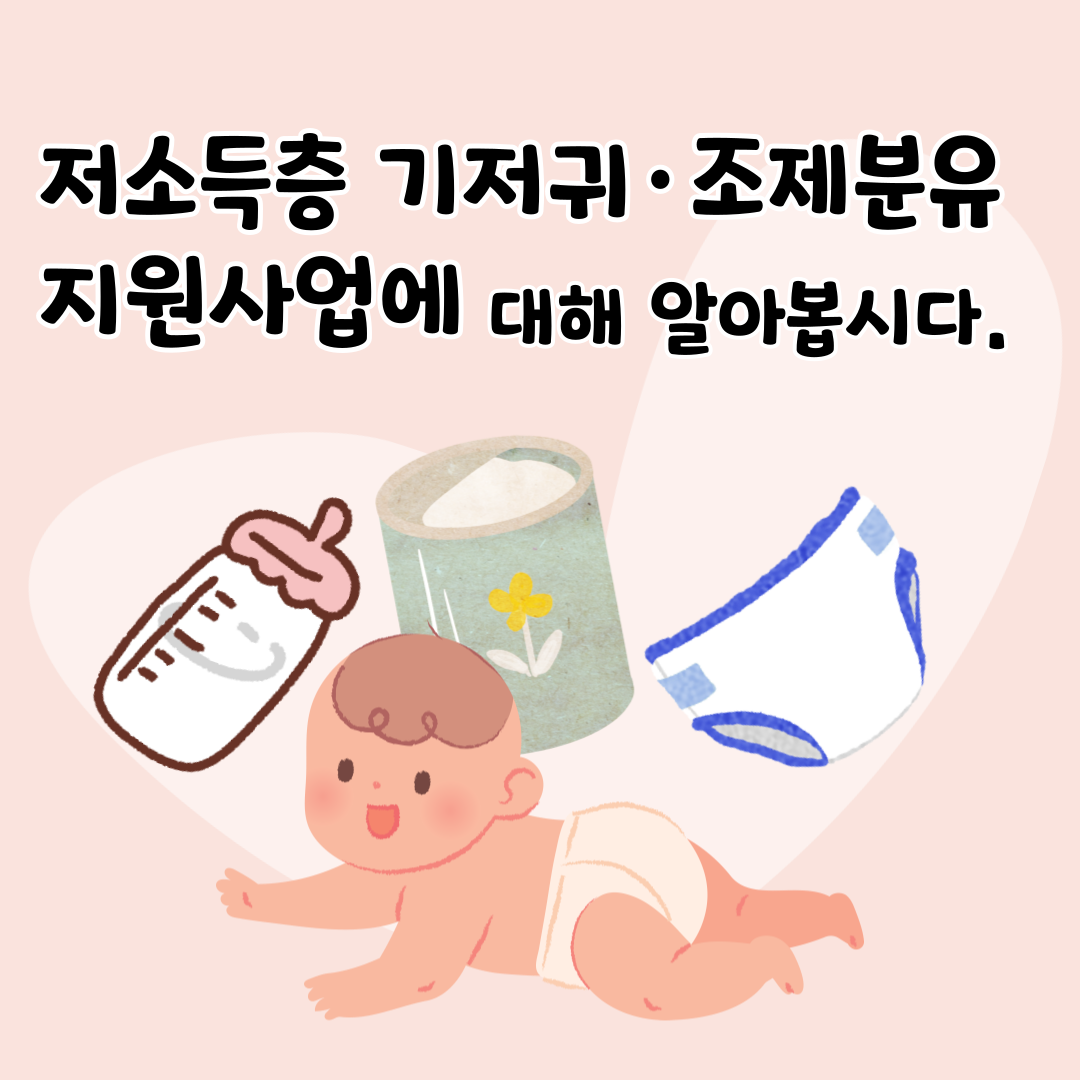 안녕하세요, 이번 시간은 저소득층의 양육 부담을 덜어드리기 위한 저소득층 기저귀·조제분유 지원사업에 대해 알아보도록 하겠습니다.