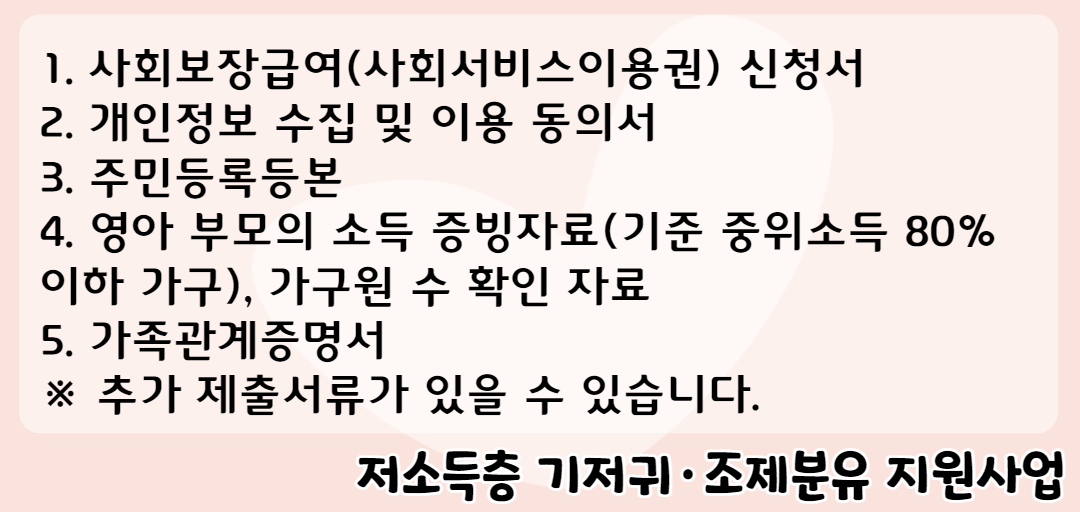 저소득층 기저귀·조제분유 신청 시 필요서류는?
