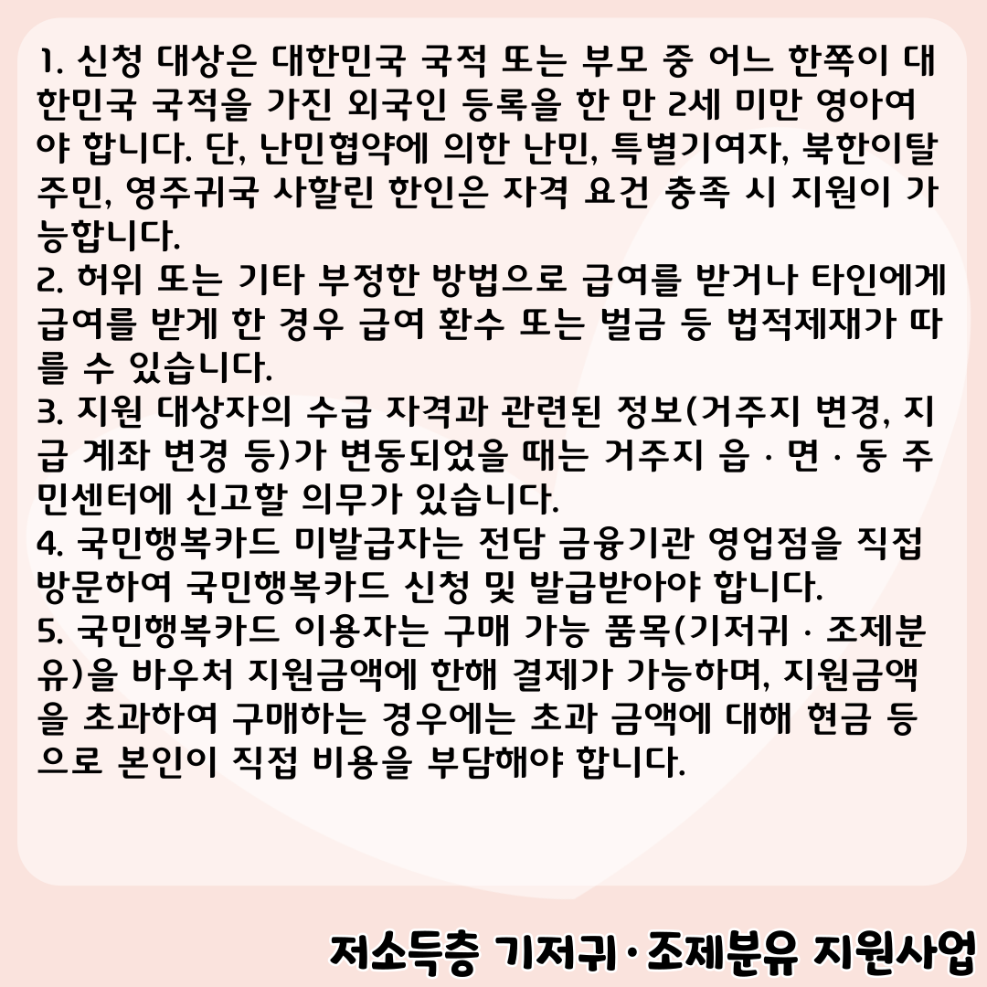 저소득층 기저귀·조제분유 지원의 유의 사항은?