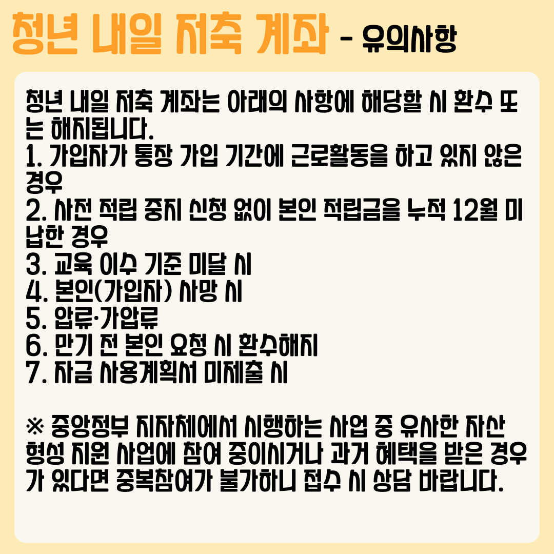 청년 내일 저축 계좌는 아래의 사항에 해당할 시 환수 또는 해지됩니다.