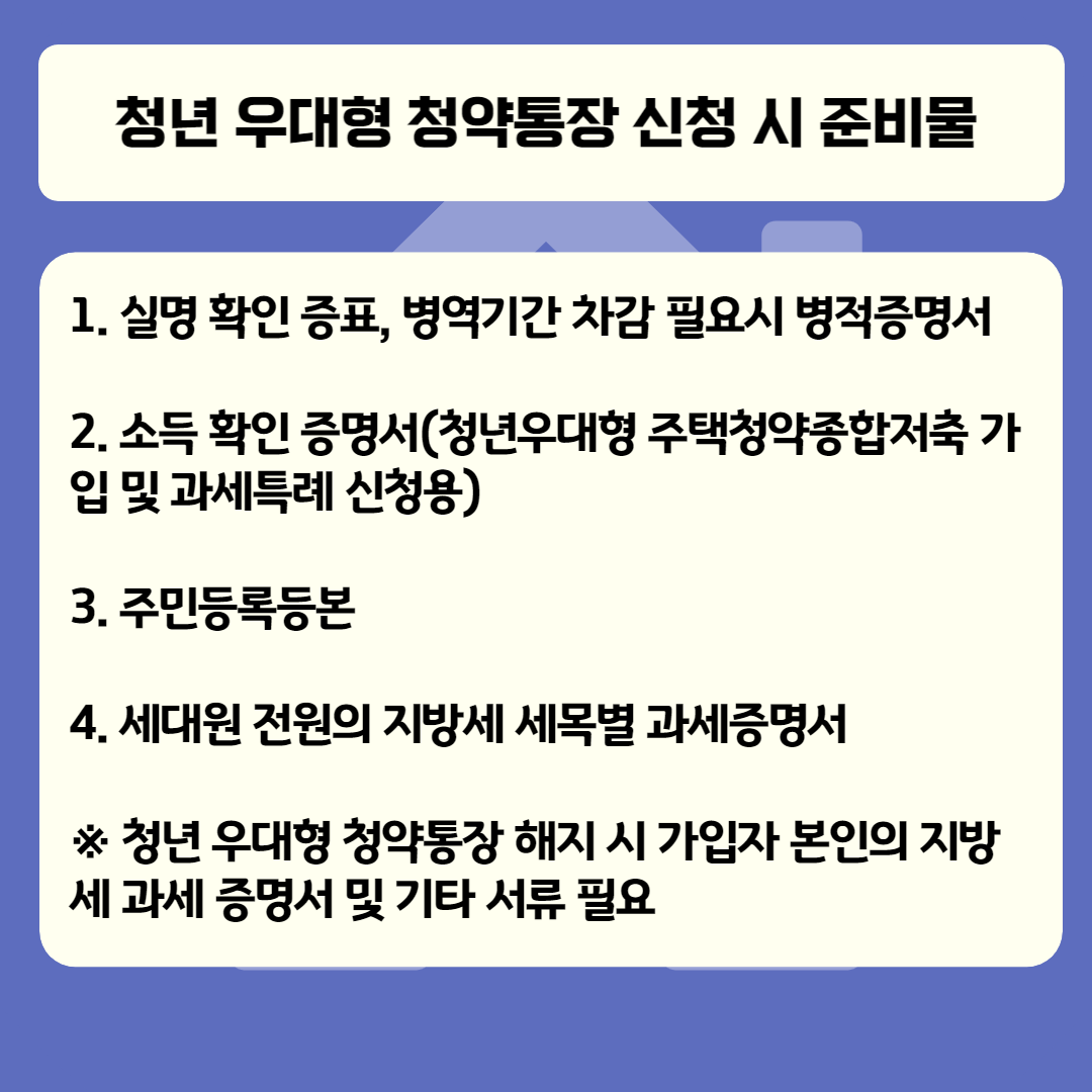 청년 우대형 청약통장 신청 시 준비물은?