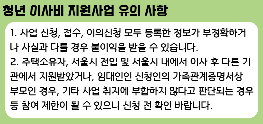 청년 이사비 지원사업 유의 사항은?