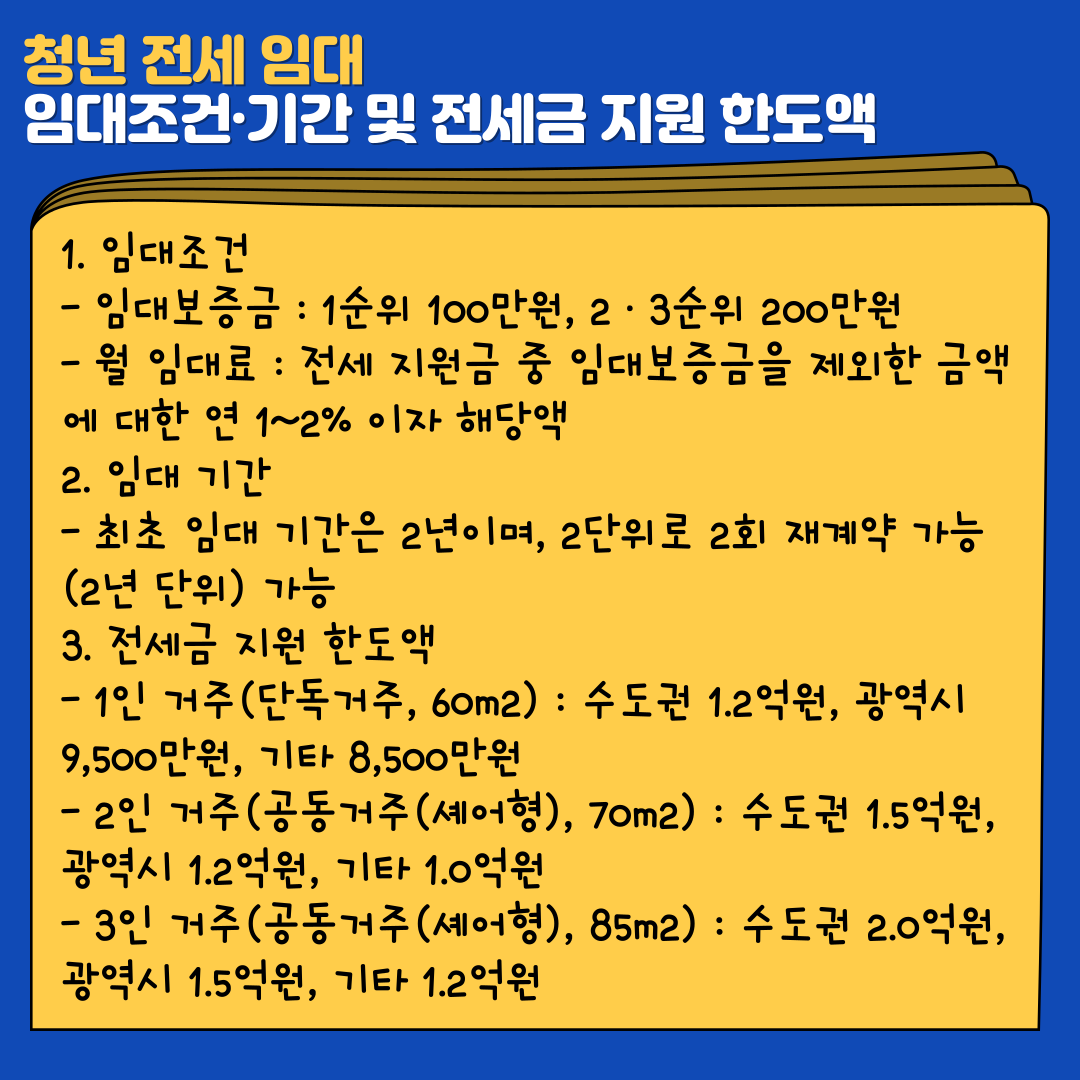 청년 전세 임대 임대조건·기간 및 전세금 지원 한도액은?