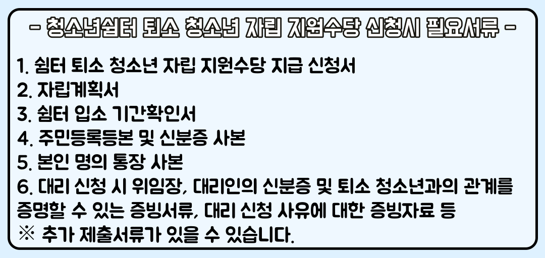 청소년쉼터 퇴소 청소년 자립 지원 신청 시 필요서류는?