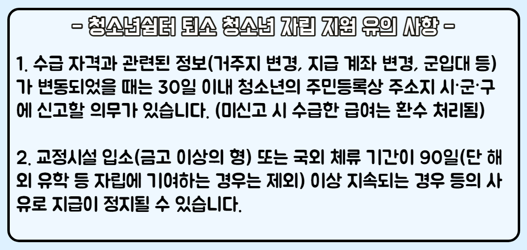 청소년쉼터 퇴소 청소년 자립 지원 유의 사항은?