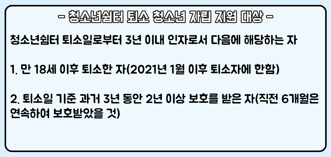 1. 만 18세 이후 퇴소한 자(2021년 1월 이후 퇴소자에 한함)