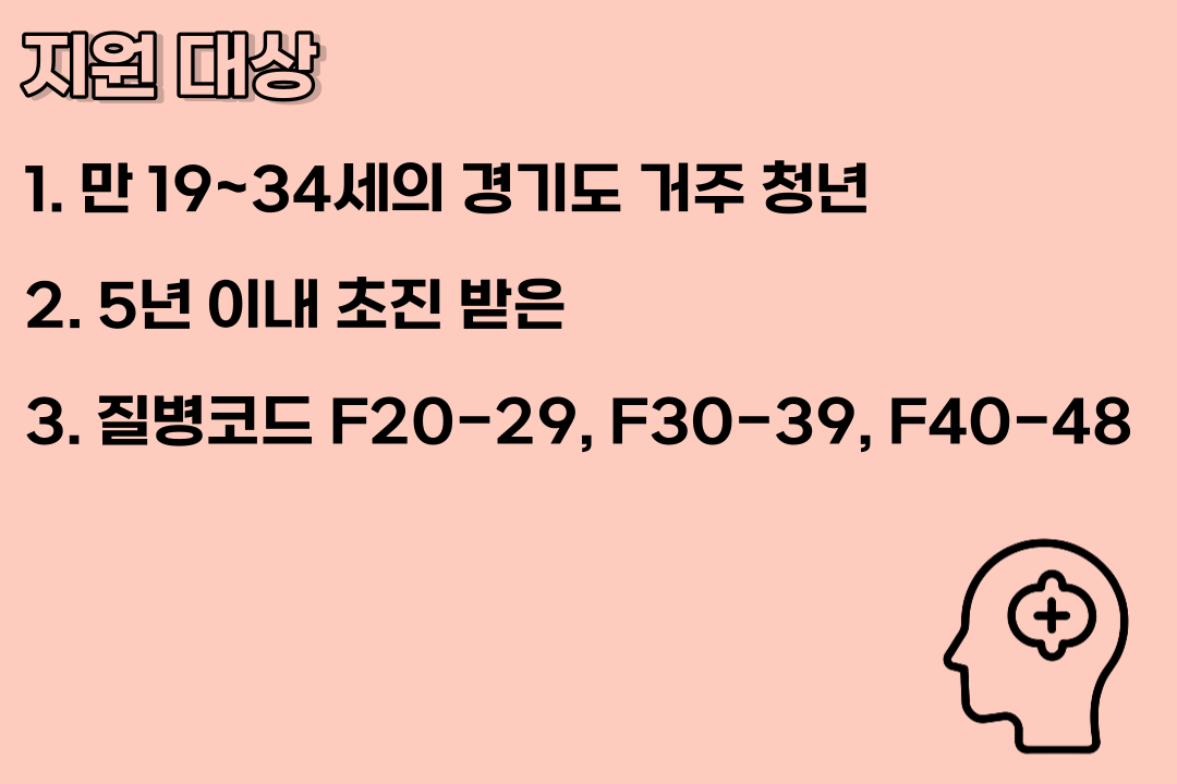 청년 마인드 케어는 경기도의 미래인 청년들의 정신건강을 위해 정신건강의학적 외래 진료를 위해 소요되는 본인 일부 부담금을 지원해주는 사업입니다.