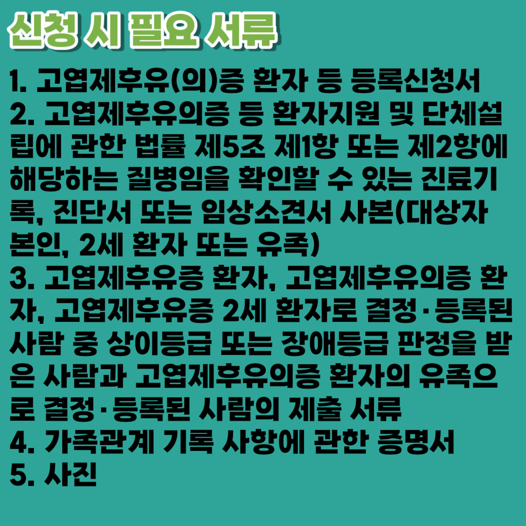 2. 고엽제후유의증 등 환자지원 및 단체설립에 관한 법률 제5조 제1항 또는 제2항에 해당하는 질병임을 확인할 수 있는 진료기록, 진단서 또는 임상소견서 사본(대상자 본인, 2세 환자 또는 유족)