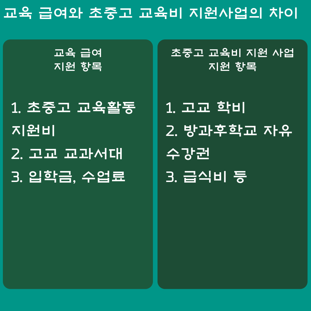 교육 급여와 초중고 교육비 지원사업과의 차이점은?