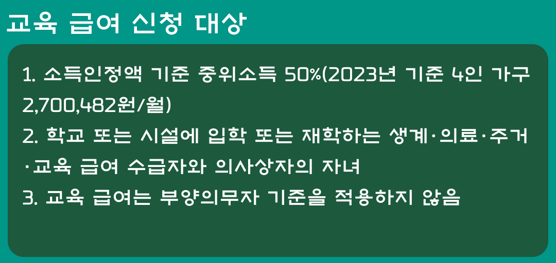 안녕하세요, 이번 시간은 2023년 국민기초생활보장 사업 중 하나인 교육 급여에 대해 알아보도록 하겠습니다.