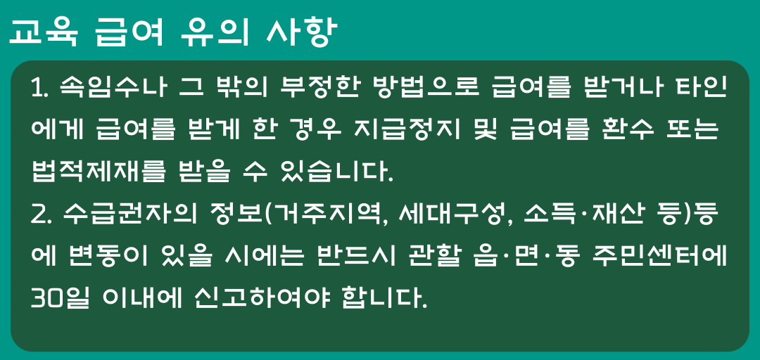 이상으로 교육 급여 대해 알아보았습니다. 더 자세한 내용을 원하신다면 거주지 읍·면·동 주민센터 및 교육부, 복지로를 통해 상당 받으시기 바랍니다.