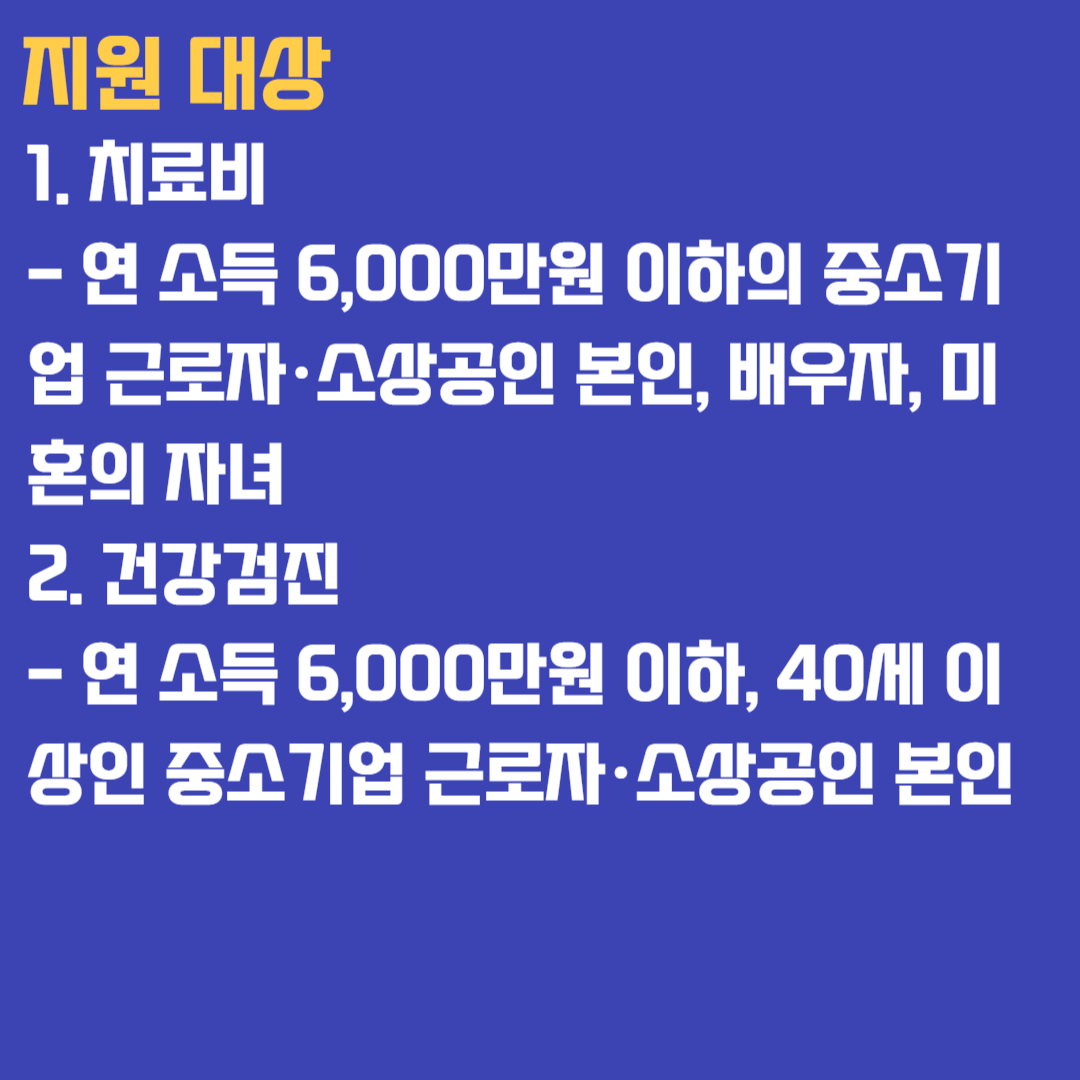 - 연 소득 6,000만원 이하의 중소기업 근로자·소상공인 본인, 배우자, 미혼의 자녀